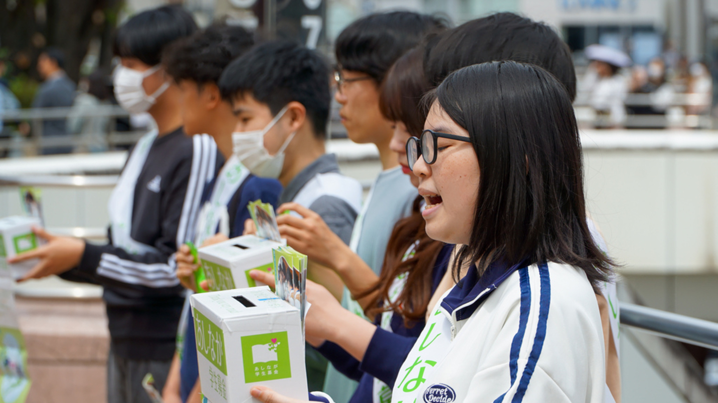 あしなが学生募金は、親を亡くした子どもたちや、親が障がいでじゅうぶんに働けない家庭の子どもたちを支援するための募金活動です。「環境に左右されず、誰もが夢を追いかけられる社会にしたい」という想いをもった学生たちが活動しています。