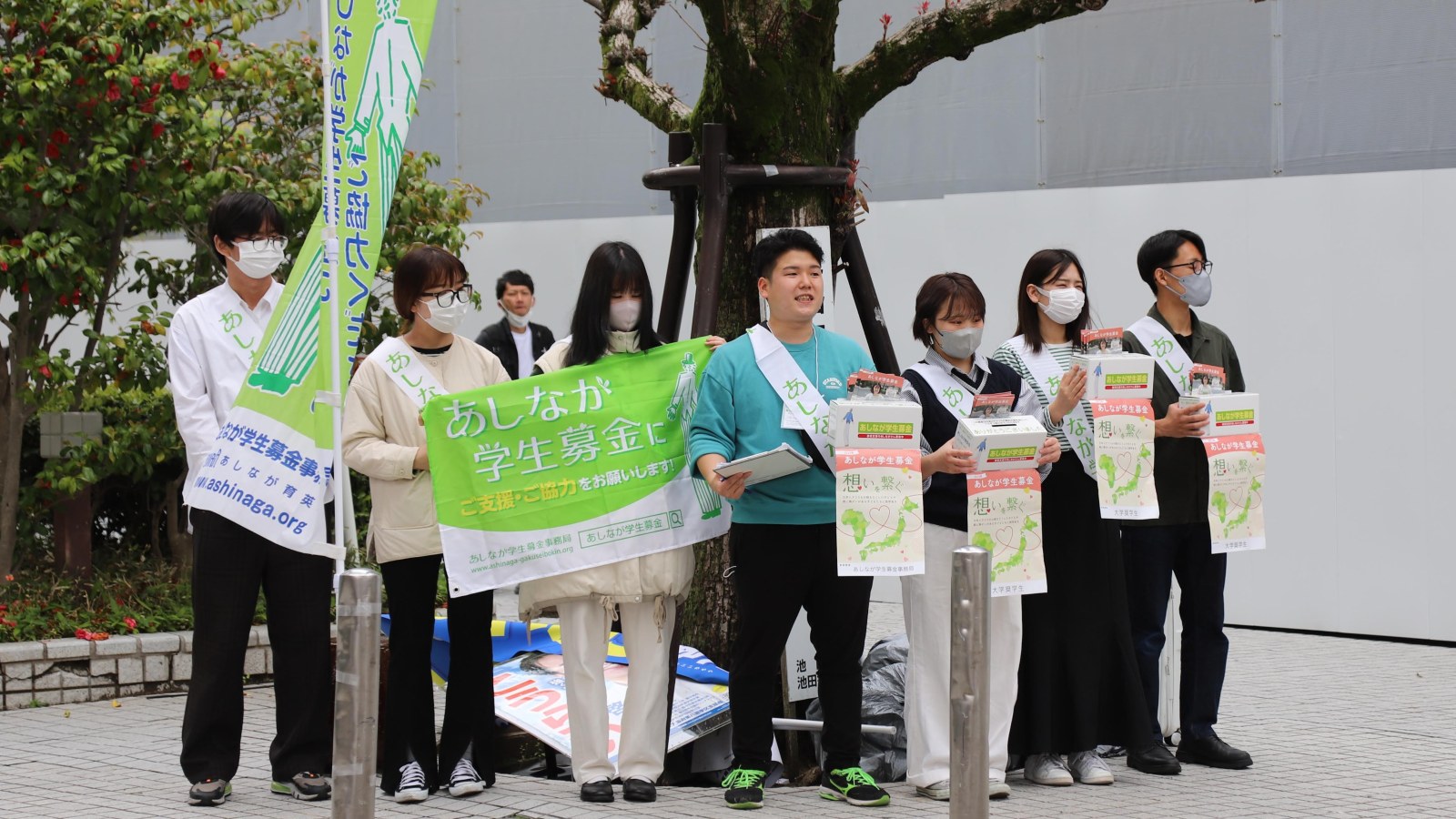 タカヒロさん(右から4番目)の“成功体験”となった池田駅前での募金(2023年4月30日)