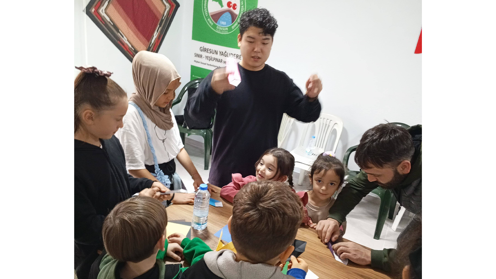 日本文化イベントで折り紙を教えるタカヒロさん(本人提供)