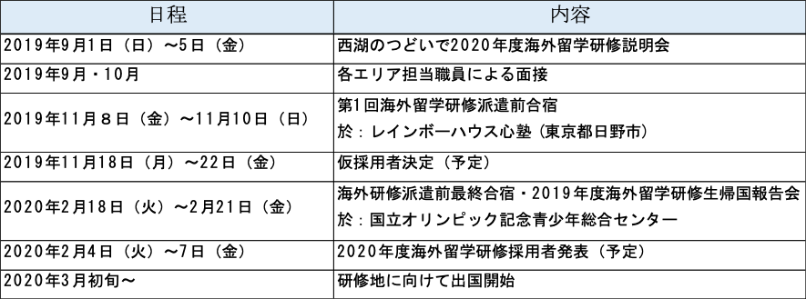 非公開: 2020年度海外留学研修生募集開始のお知らせ