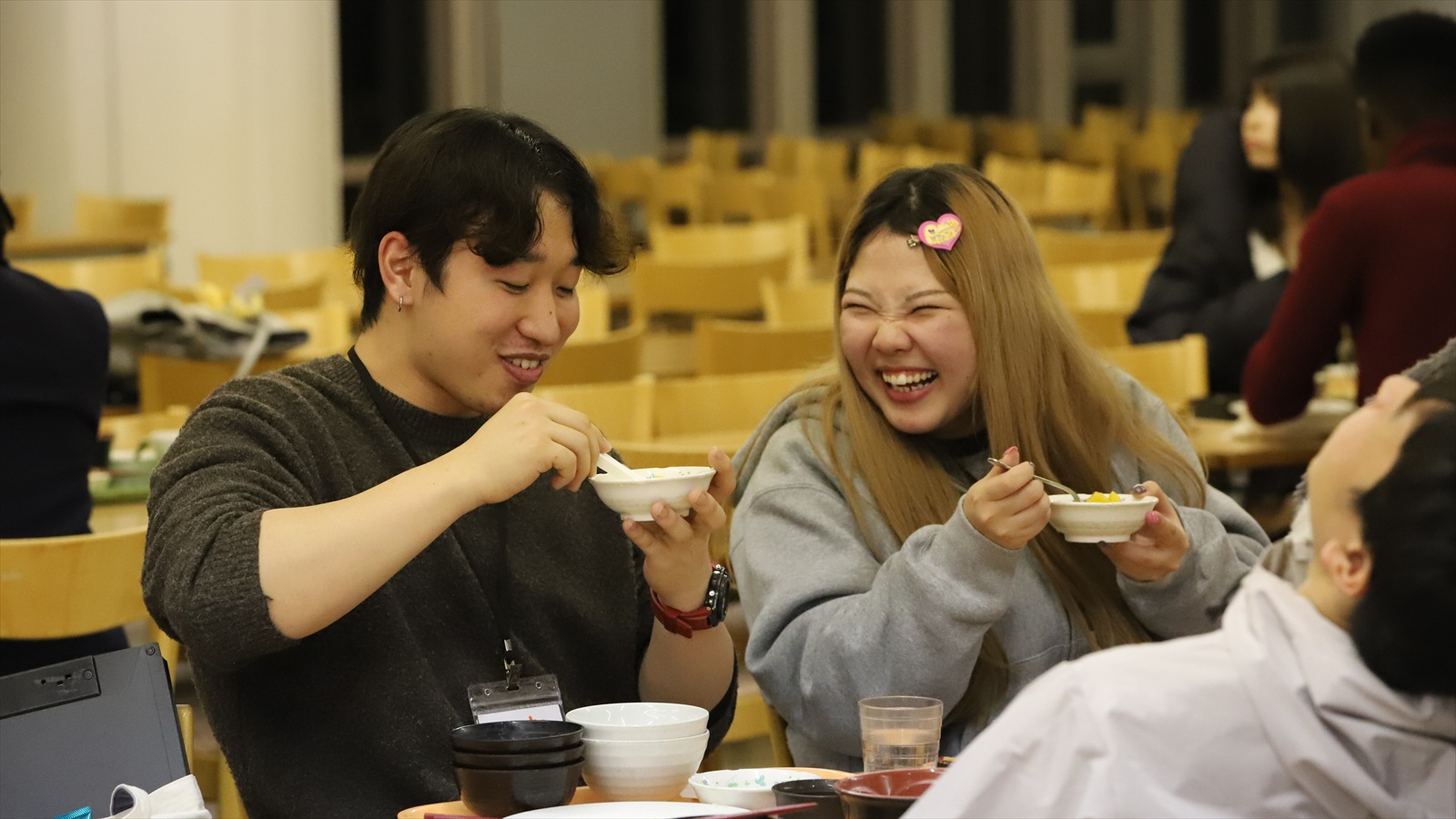 初日の夕食時には、班の仲間とすっかり打ち解けていた