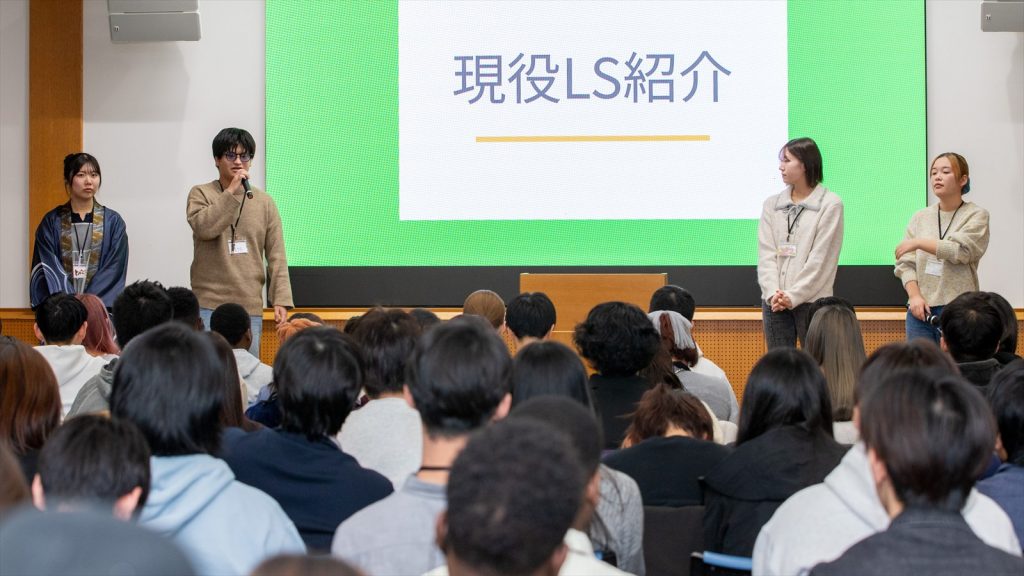 充実した「大学生活の過ごし方」の一つのあり方として、大学奨学生の有志が取り組んでいる活動を紹介。ラーニングサポートプログラム、あしなが学生募金、海外留学研修に携わっている上級生が、それぞれの魅力を語った