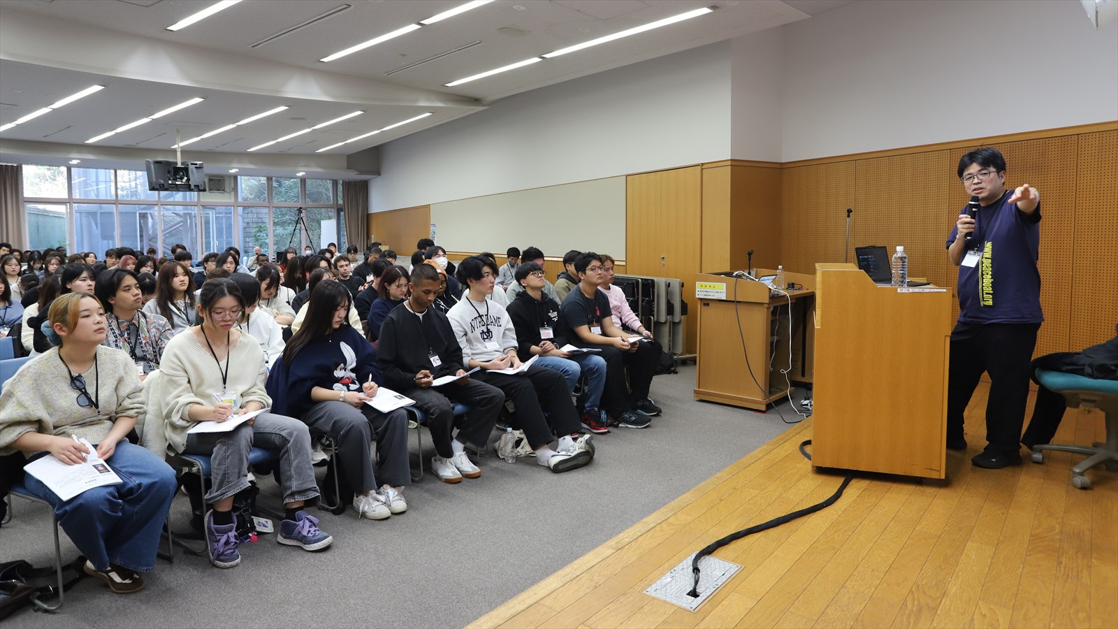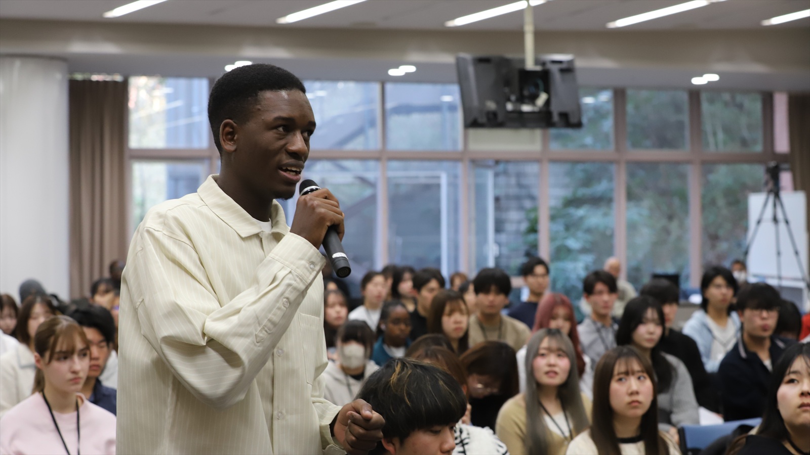 参加者の多くは大学1年生で、日本国内の大学で学ぶ「アフリカ遺児高等教育支援100年構想生」も参加。上級生スタッフを含むと、総勢124人の学生が集いました。