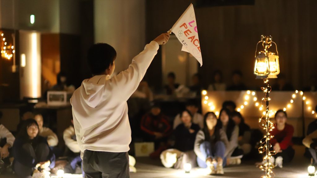 3日目夜の「決意表明」がつどいのクライマックス。各班の代表が、つどいを通して決めた「どんな大学生活を送るか」を発表