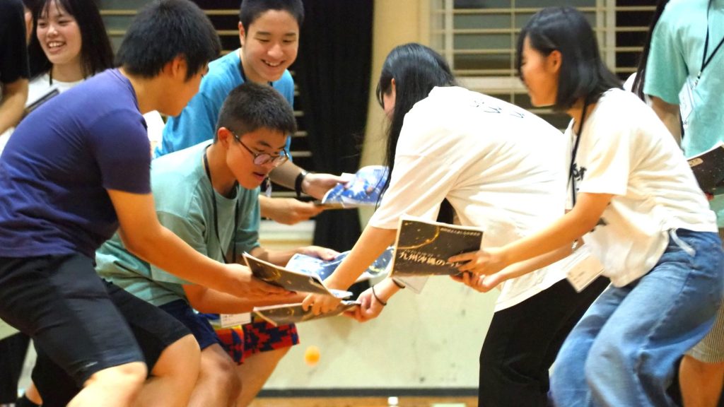 「九州沖縄のつどい」は8月19日(火)から8月22日(金)にかけて開催されました。参加したのは、福岡県、佐賀県、長崎県、熊本県、大分県、宮崎県、鹿児島県、沖縄県在住の高校奨学生100人。そして、45人の大学生・専門学校生リーダーと、12人のあしなが育英会職員および看護師で、つどいを支えました。