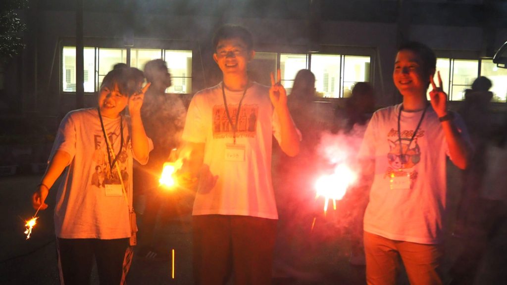 夜には、満天の星空の下で花火を楽しみました。思い思いの花火を手に持ち、写真を撮ったりおしゃべりしたりと、心に残る夏の思い出を作りました。