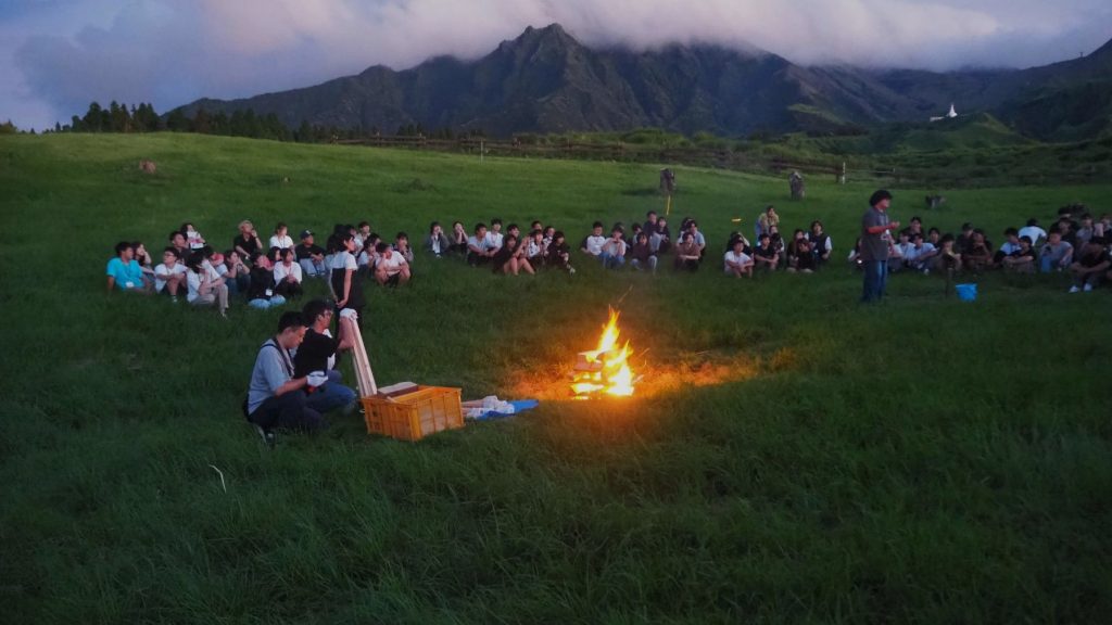 さわやかな風が吹く草原でのキャンプファイヤーは、九州沖縄のつどいならではです